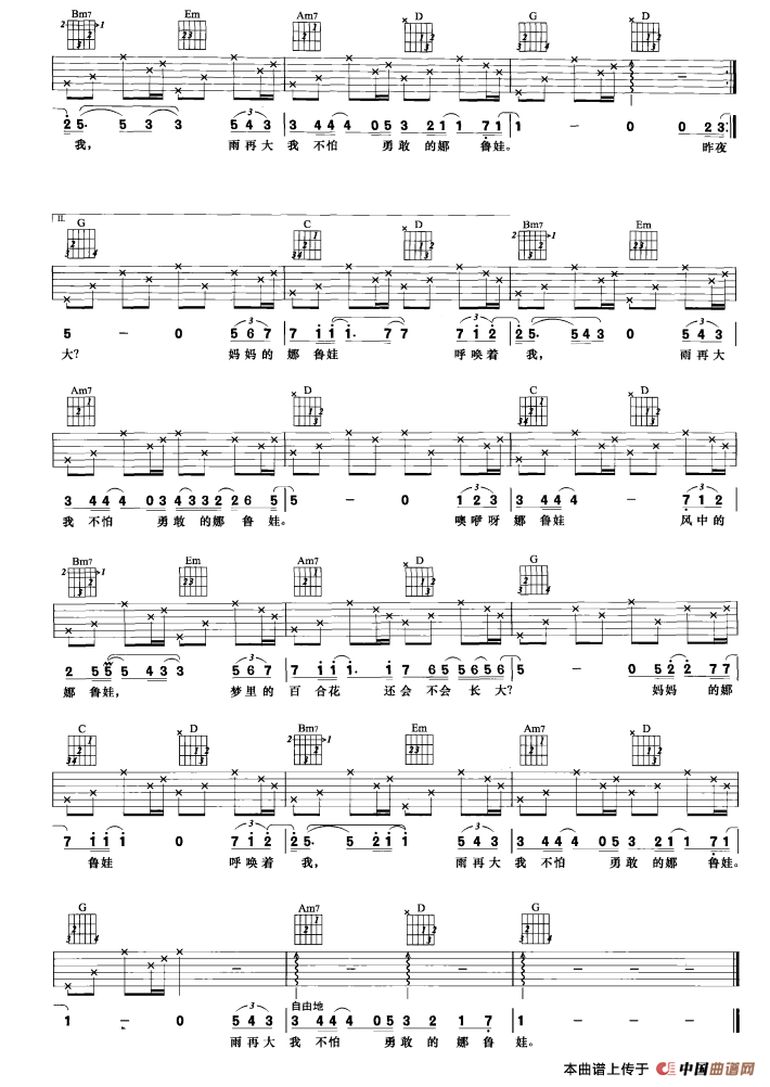 妈妈的娜鲁娃吉他谱,妈妈的娜鲁娃简谱"