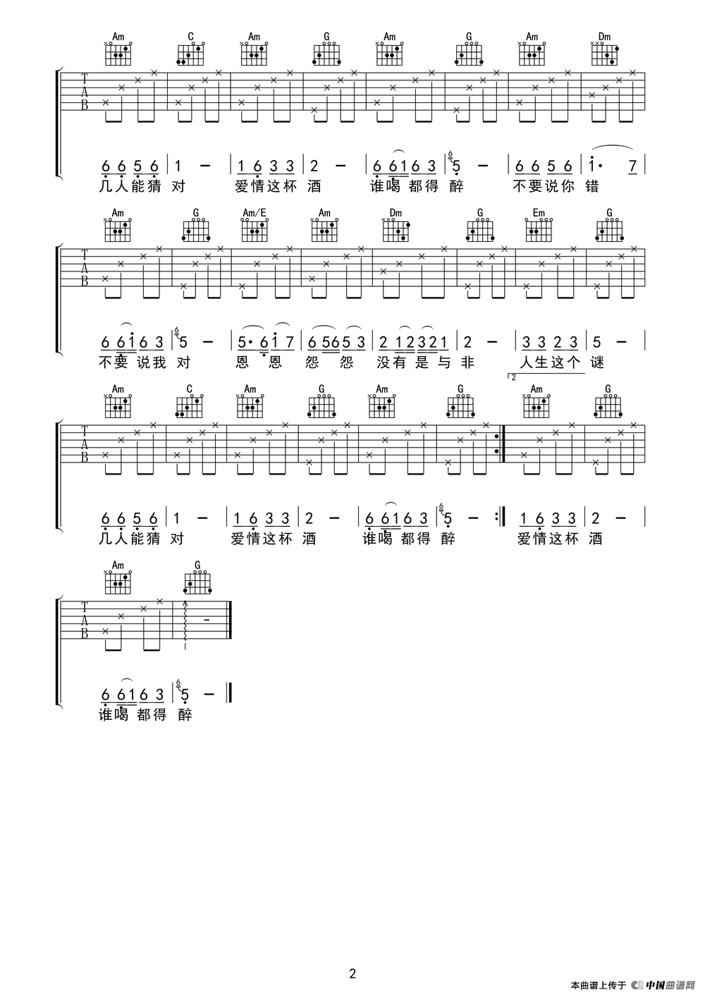 爱情这杯酒谁喝都得醉吉他谱,爱情这杯酒谁喝都得醉简谱"