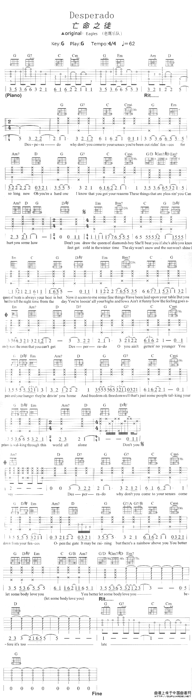 Desperado吉他谱(亡命之徒),Desperado简谱"