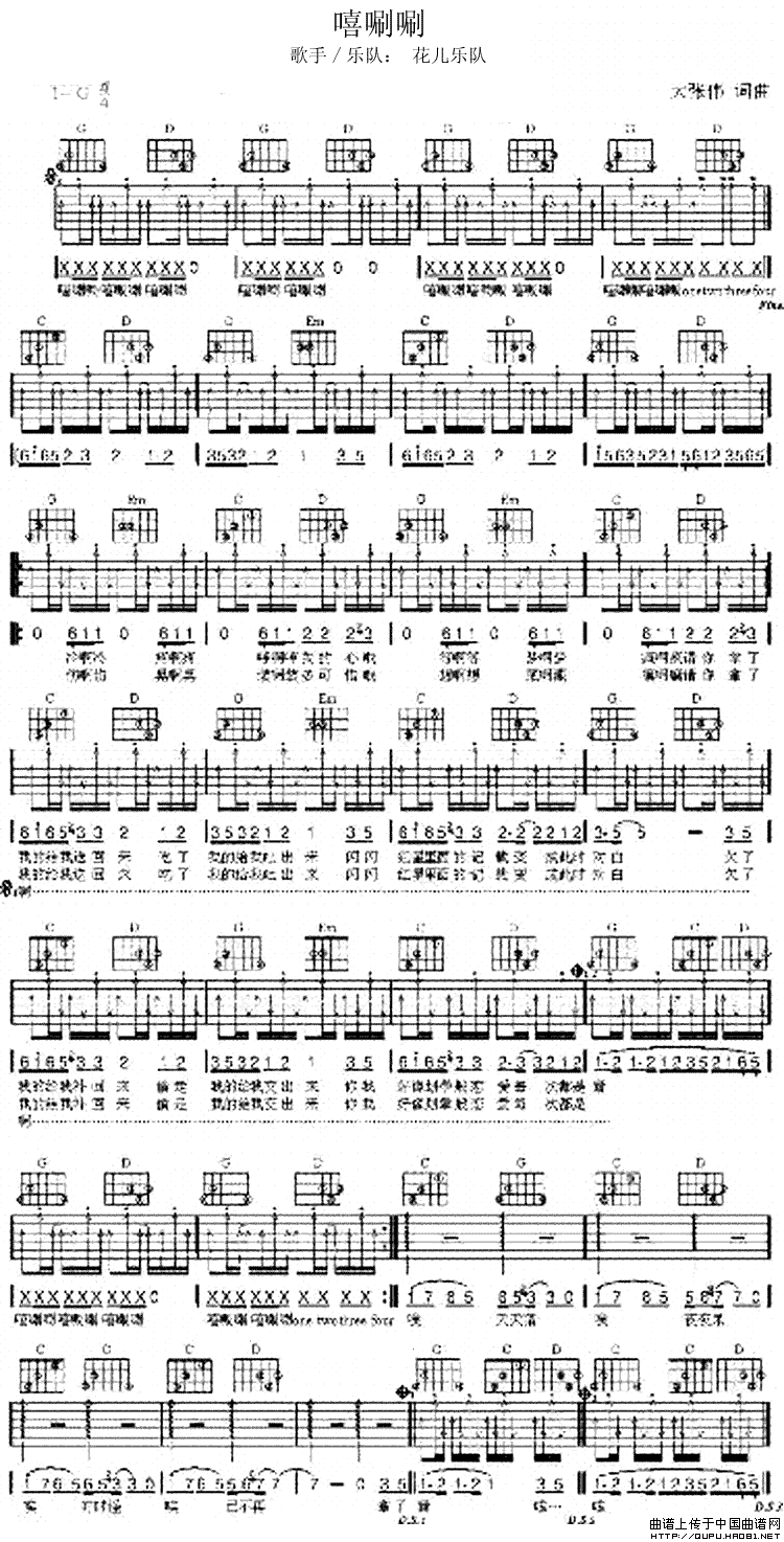 嘻唰唰吉他谱,嘻唰唰简谱"