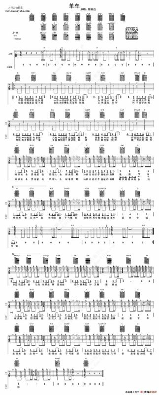 单车吉他谱(黄伟文词 柳重言曲),单车简谱"