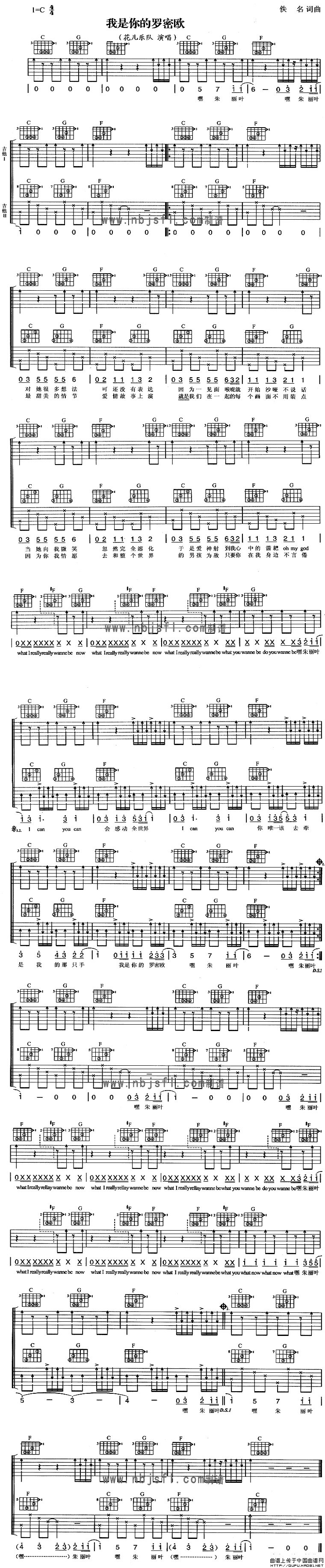 我是你的罗密欧吉他谱,我是你的罗密欧简谱"