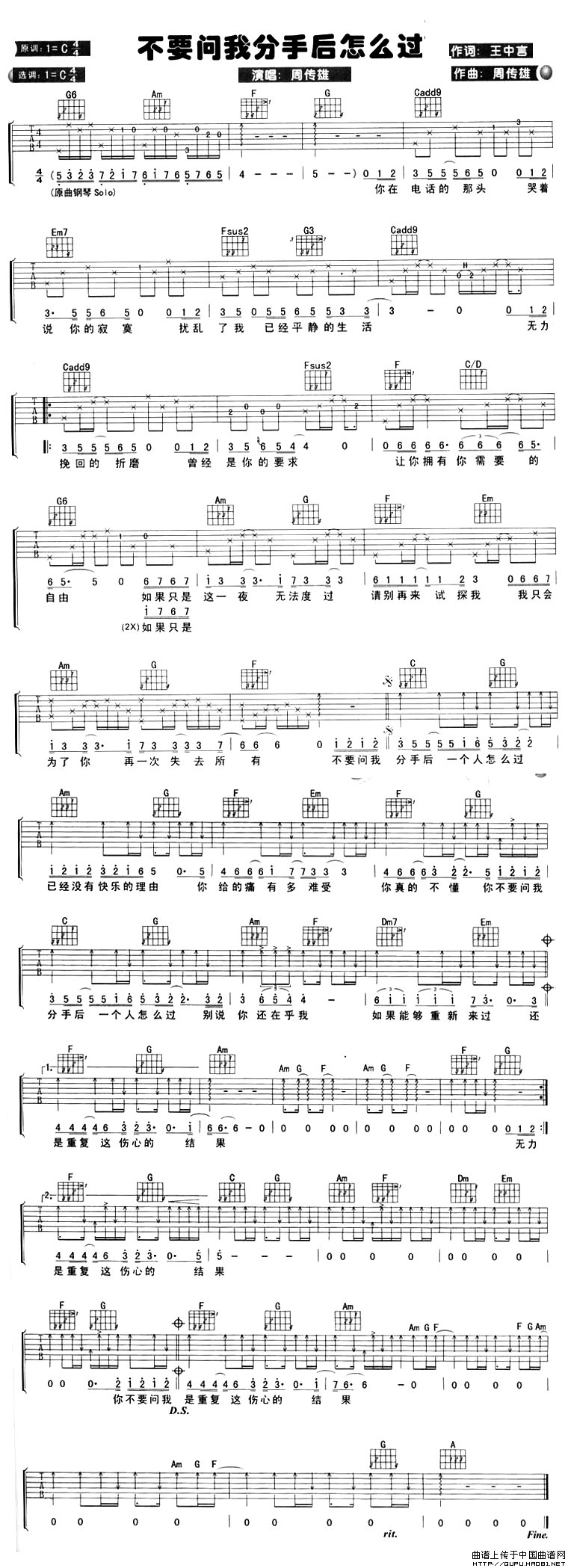 不要问我分手后怎么过吉他谱,不要问我分手后怎么过简谱"