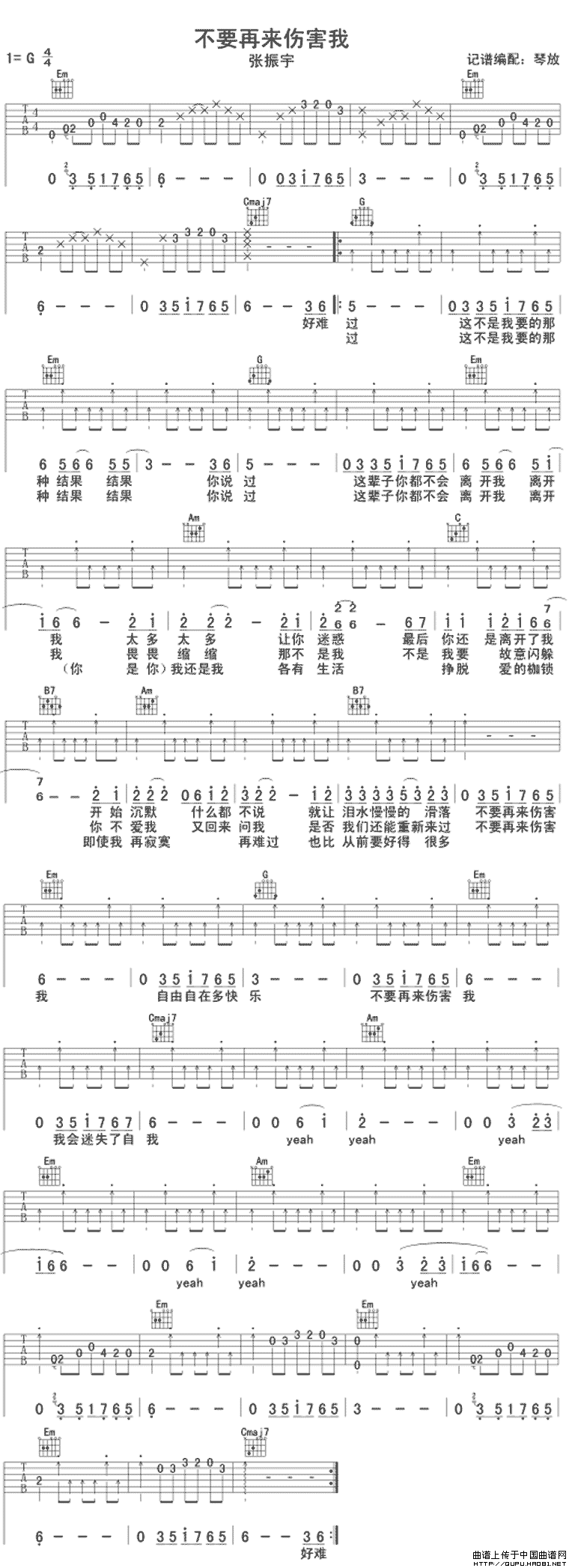 不要再来伤害我吉他谱(琴放编配版),不要再来伤害我简谱"