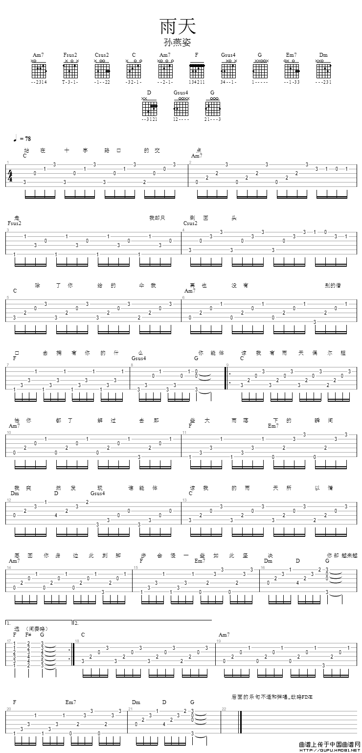 雨天吉他谱(孙燕姿演唱版),雨天简谱"