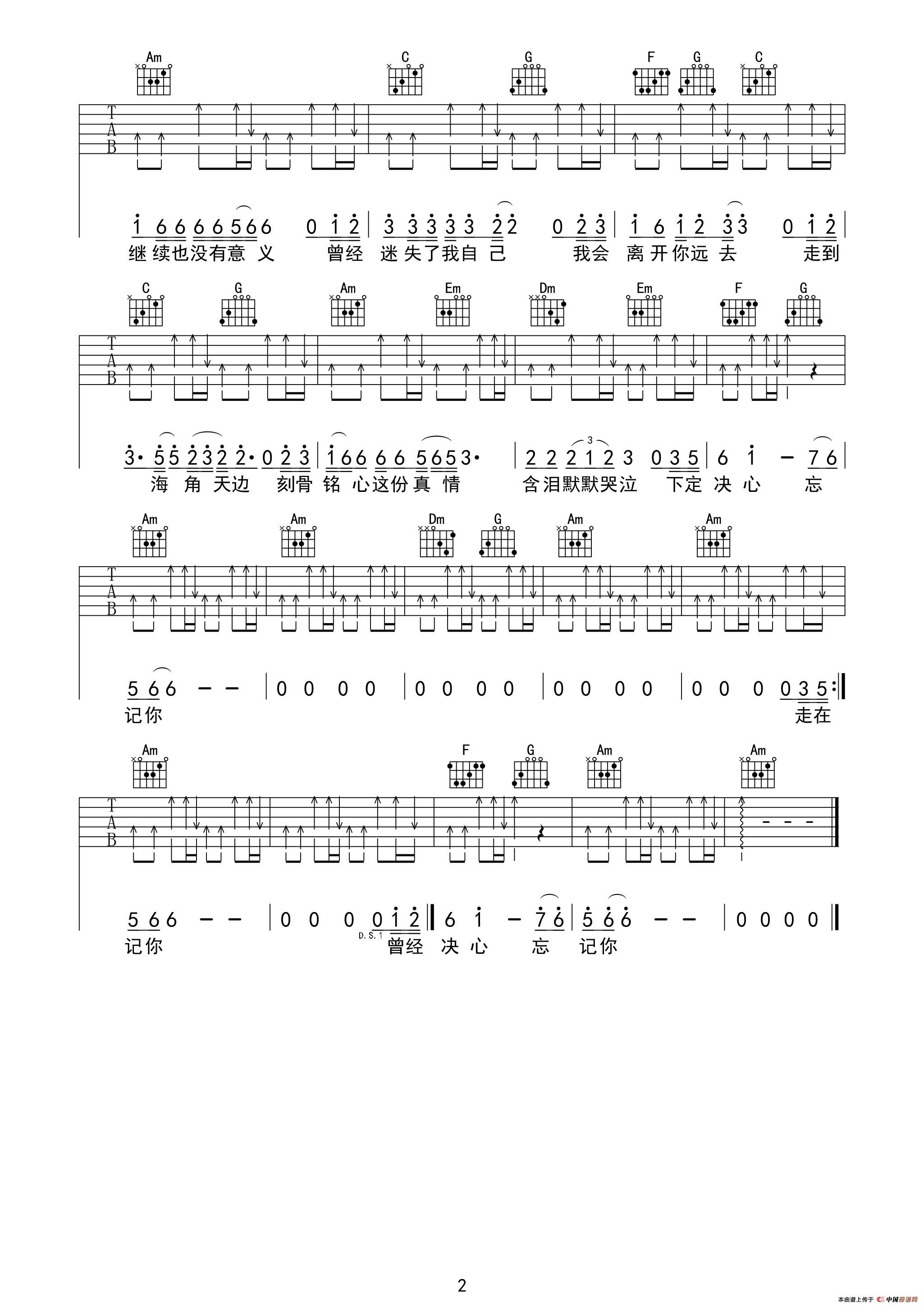 下定决心忘记你吉他谱,下定决心忘记你简谱"