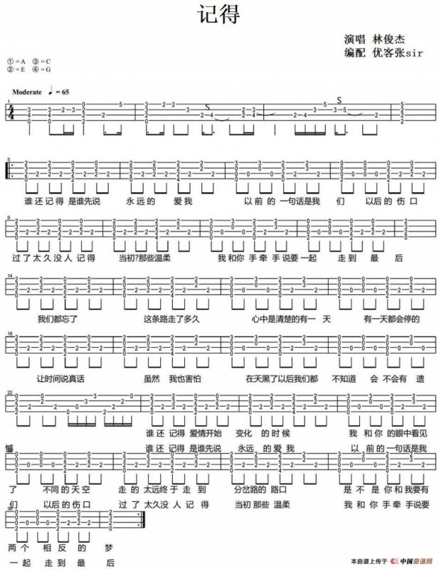记得吉他谱(尤克里里弹唱谱),记得简谱"
