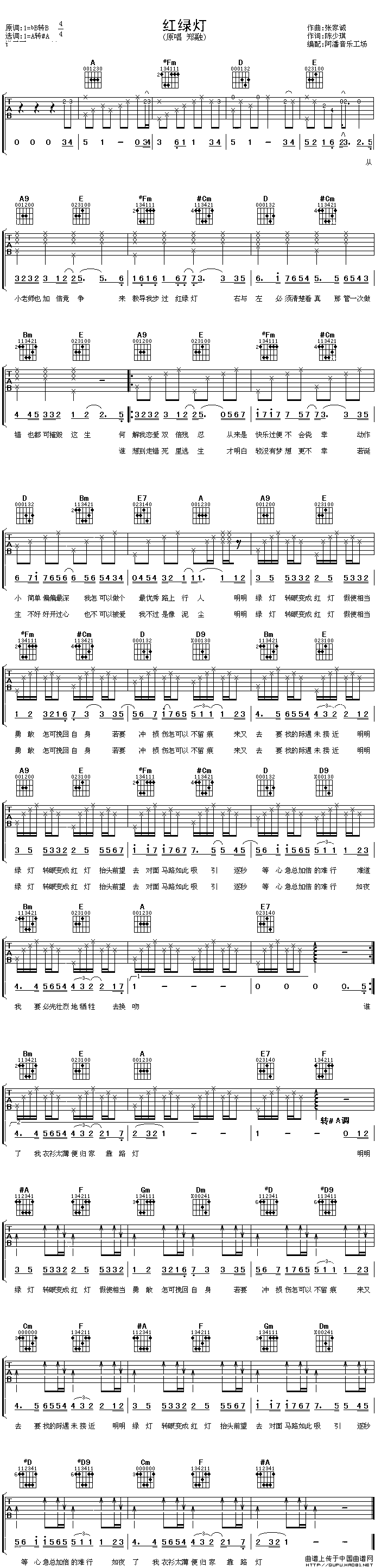 红绿灯吉他谱(陈少琪词 张家诚曲),红绿灯简谱"