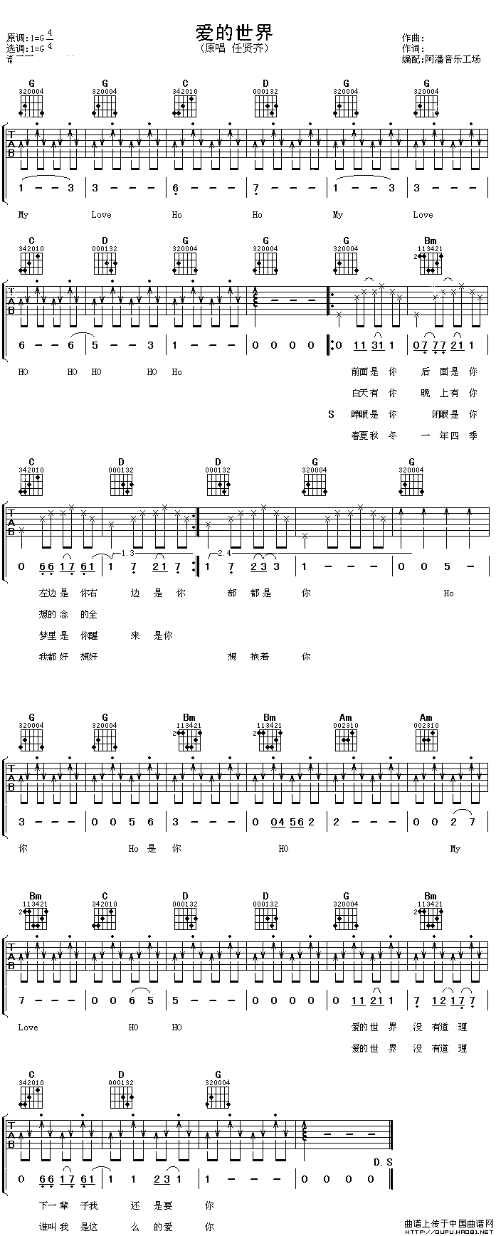爱情吉他谱(阿潘编配版),爱情简谱"