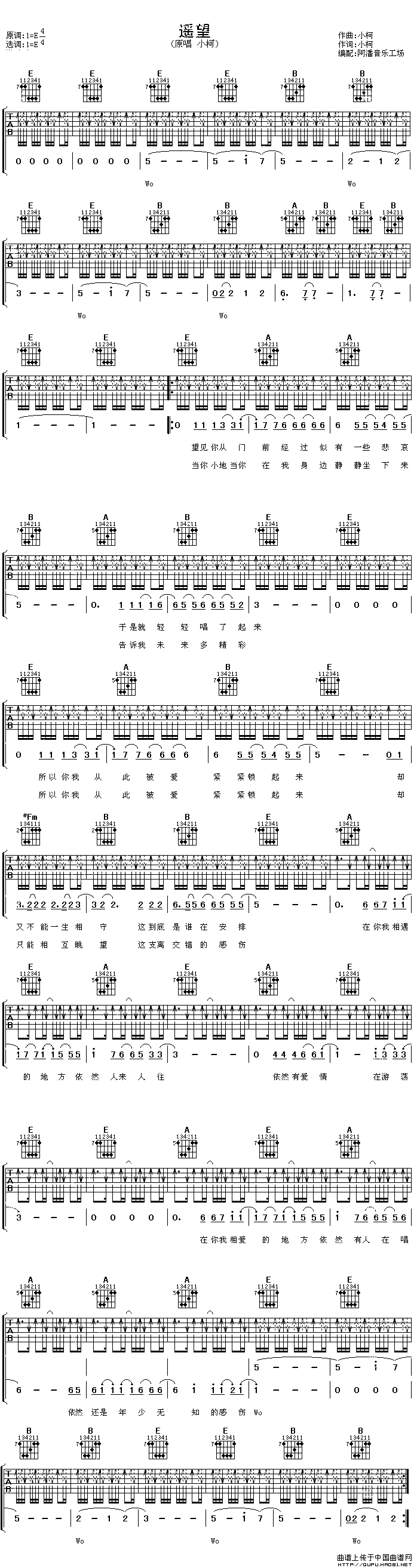 遥望吉他谱(小柯词曲版),遥望简谱"