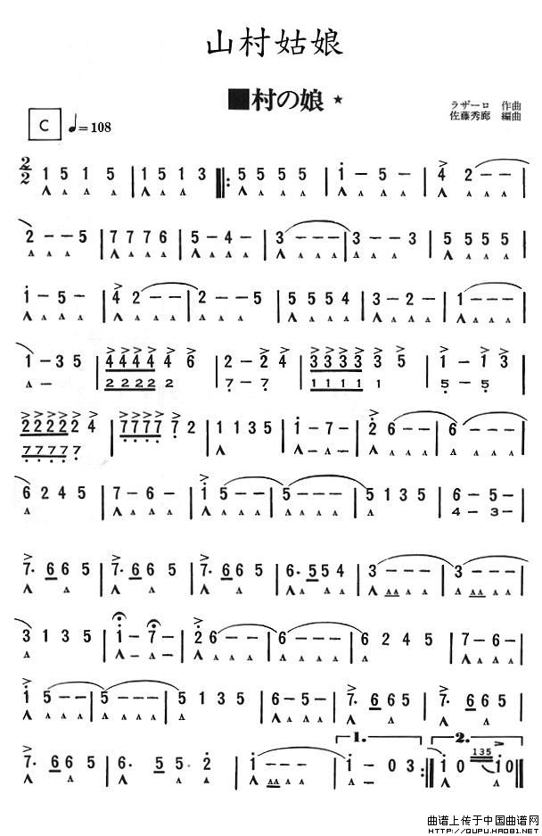 山村姑娘口琴谱,山村姑娘简谱"