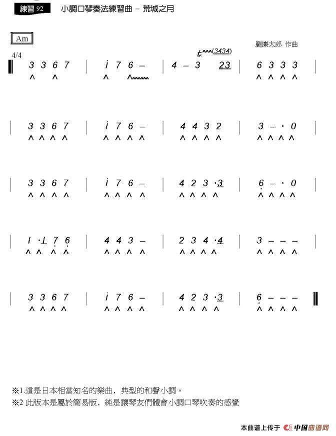 荒城之月口琴谱(复音独奏),荒城之月简谱"