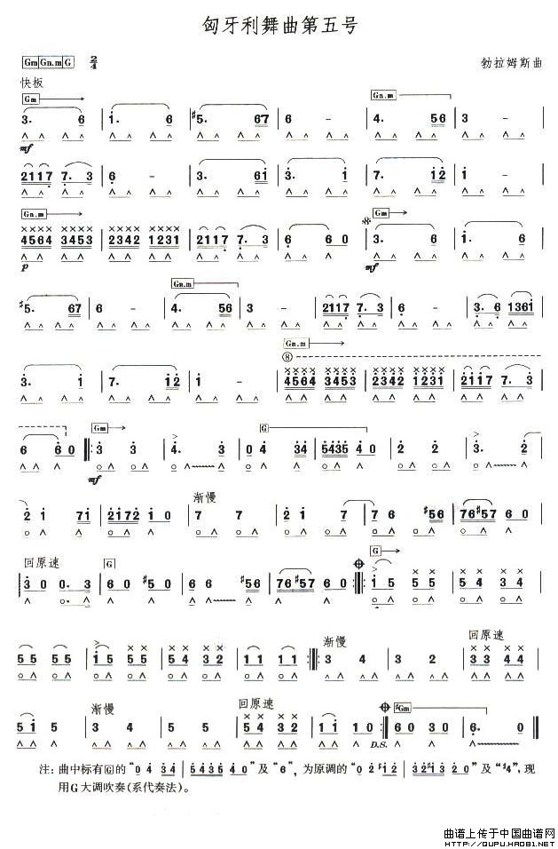 考级九级曲目:匈牙利舞曲第五号口琴谱,考级九级曲目:匈牙利舞曲第五号简谱"