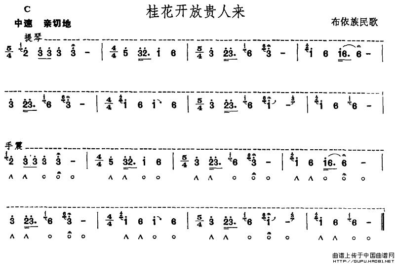 桂花开放贵人来口琴谱,桂花开放贵人来简谱"