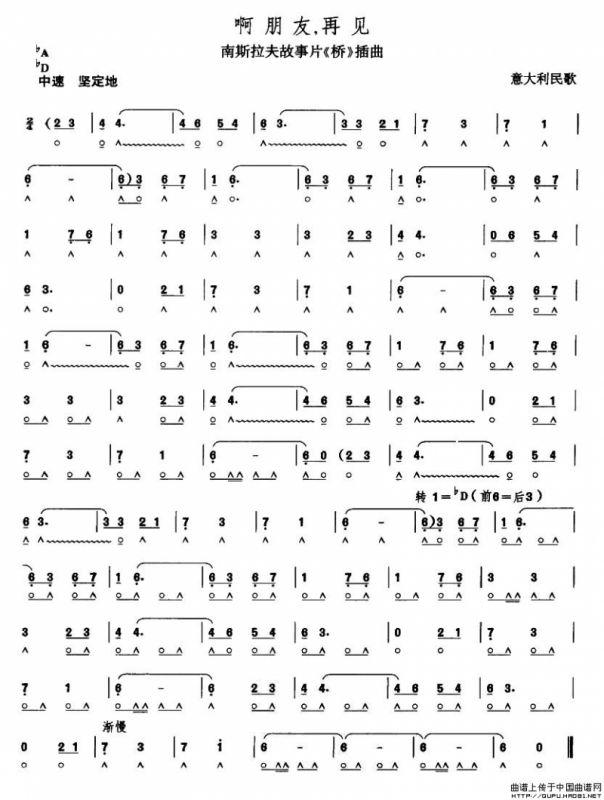 啊 朋友,再见口琴谱,啊 朋友,再见简谱"