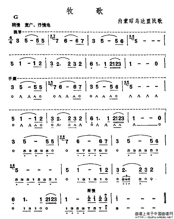 牧歌口琴谱(内蒙昭乌达盟民歌),牧歌简谱"