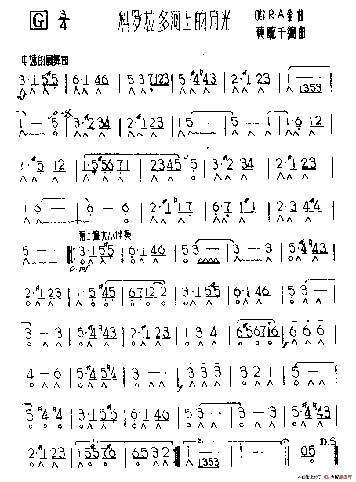科罗拉多河上的月光口琴谱,科罗拉多河上的月光简谱"