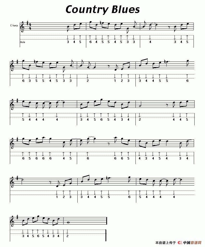 Country Blues口琴谱(布鲁斯),Country Blues简谱"