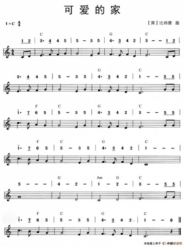 可爱的家口琴谱(线简谱混排版),可爱的家简谱"