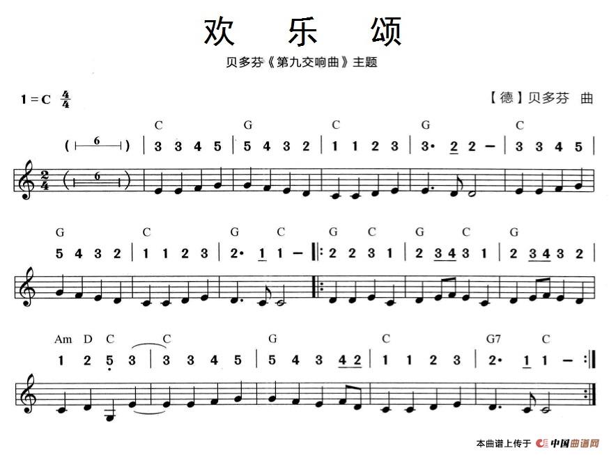 欢乐颂口琴谱(贝多芬《第九交响曲》主题)(线简谱混排版),欢乐颂(贝多芬《第九交响曲》主题)简谱"