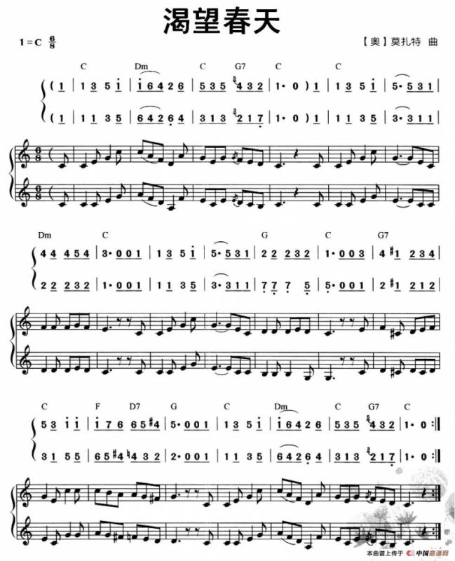 渴望春天口琴谱(二重奏、线简谱混排版),渴望春天简谱"