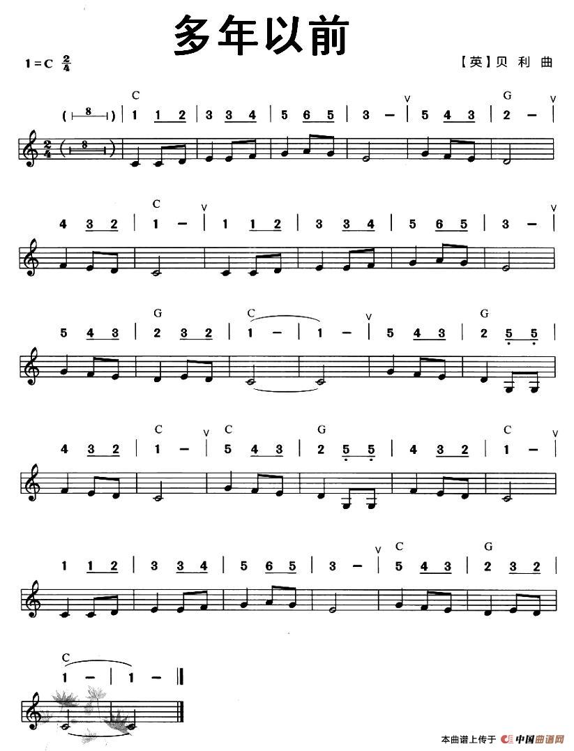 多年以前口琴谱(线简谱混排版),多年以前简谱"