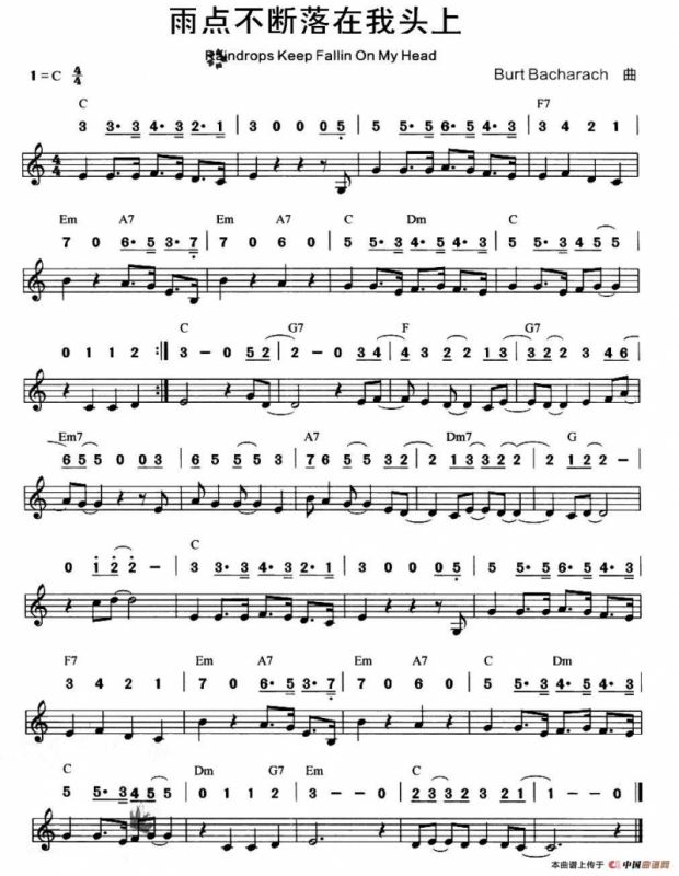 雨点不断落在我头上口琴谱(线简谱混排版),雨点不断落在我头上简谱"