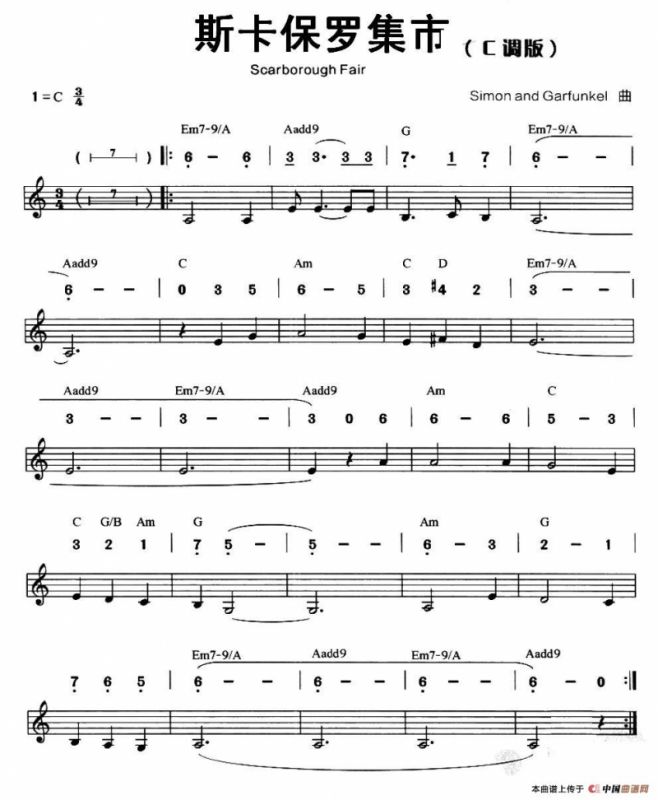 斯卡保罗集市口琴谱(线简谱混排版),斯卡保罗集市简谱"