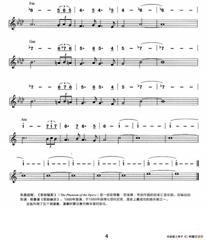 歌剧魅影口琴谱(线简谱对照版),歌剧魅影简谱"