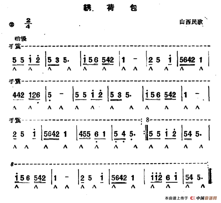 绣荷包口琴谱(山西民歌),绣荷包简谱"