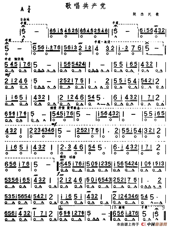 歌唱共产党口琴谱,歌唱共产党简谱"