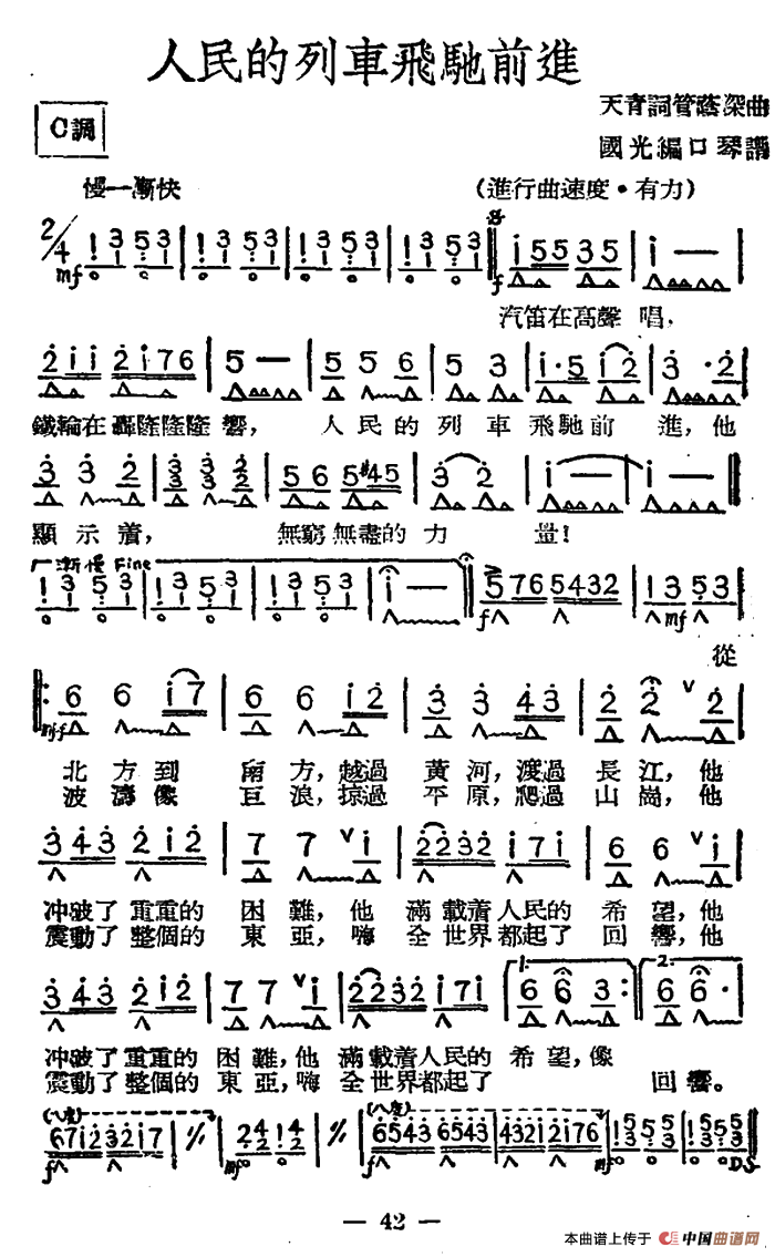 人民的列车飞驰前进口琴谱,人民的列车飞驰前进简谱"