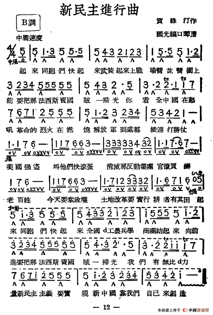 新民主进行曲口琴谱,新民主进行曲简谱"