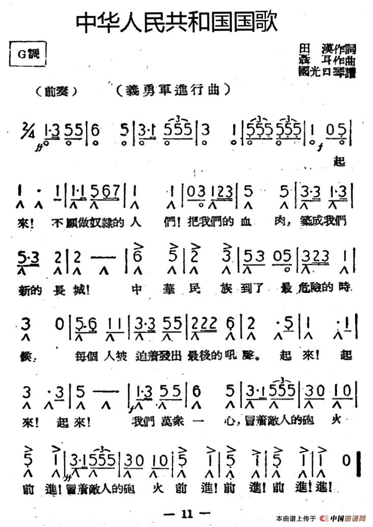中华人民共和国国歌口琴谱,中华人民共和国国歌简谱"