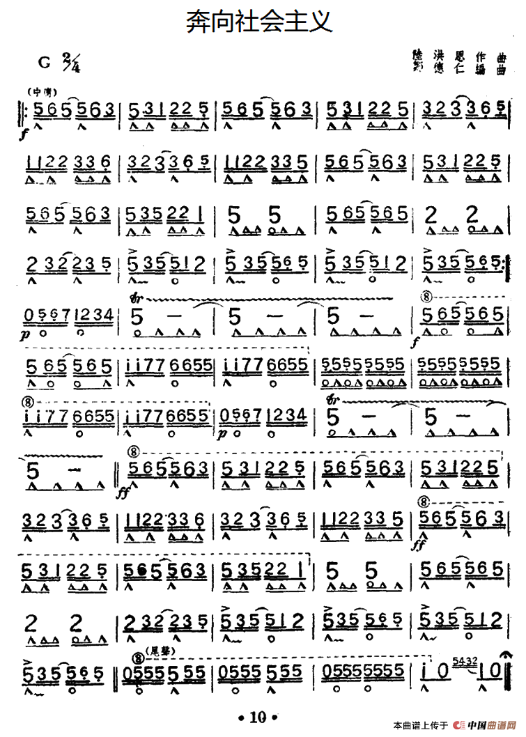 奔向社会主义口琴谱,奔向社会主义简谱"