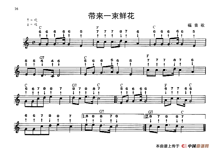 带来一束鲜花口琴谱(布鲁斯),带来一束鲜花简谱"
