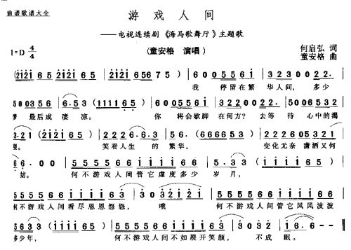 游戏人间简谱,游戏人间歌曲简介"