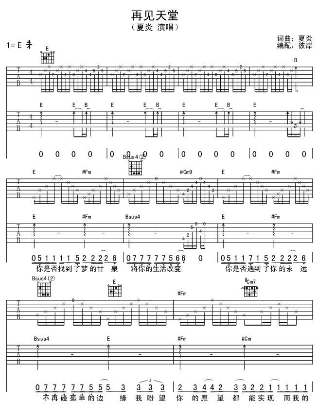 再见天堂简谱,再见天堂歌曲简介"