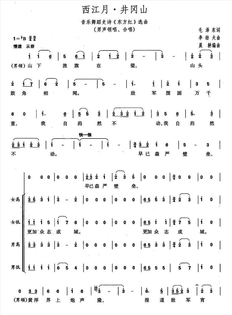 井岗山·西江月简谱,井岗山·西江月歌曲简介"