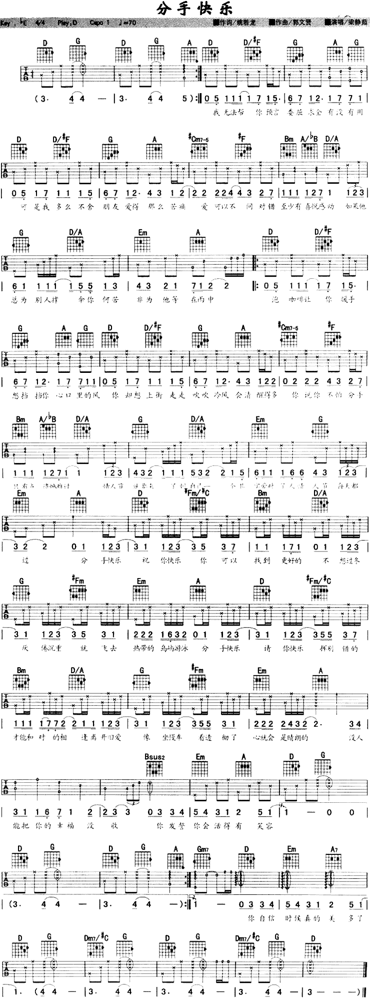 分手快乐简谱,分手快乐歌曲简介"