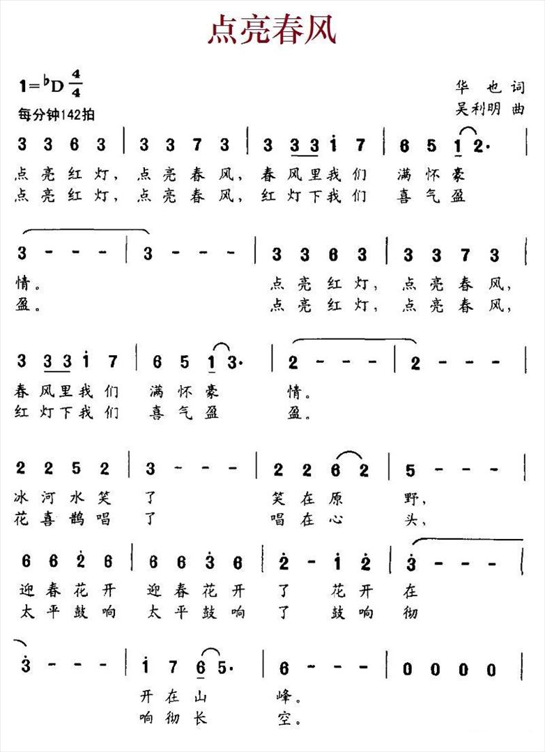 点亮春风简谱,点亮春风歌曲简介