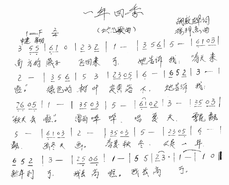 一年四季简谱,一年四季歌曲简介