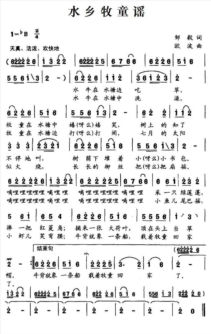 水乡牧童谣简谱,水乡牧童谣歌曲简介