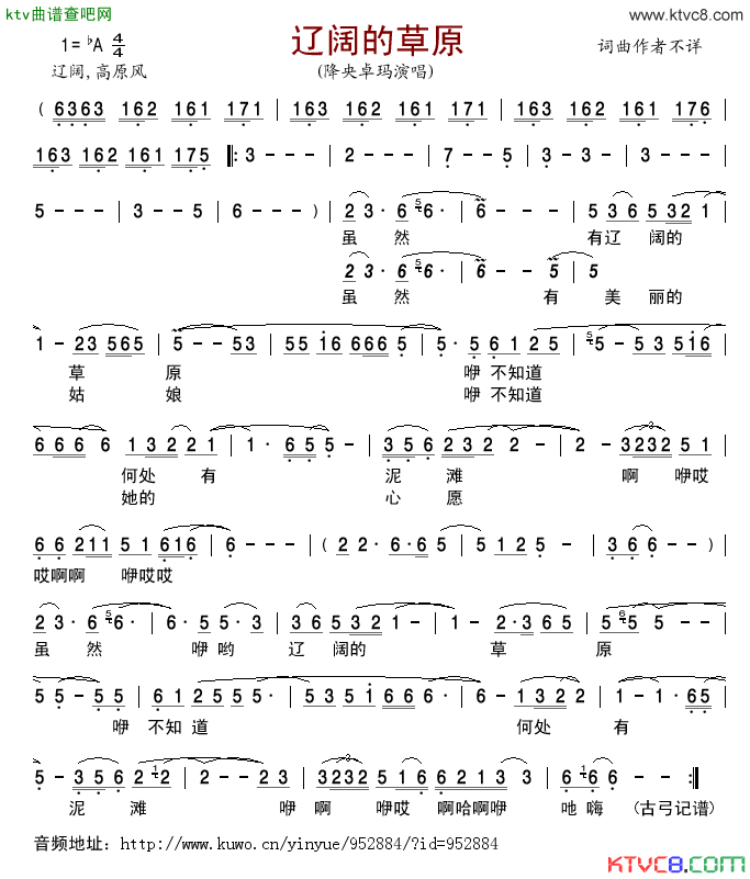 辽阔的草原简谱,演唱降央卓玛,歌词