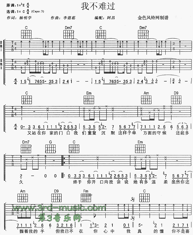 我不难过歌曲简介《我不难过》是一首由陈奕迅演唱的歌曲,歌曲旋律简单优美,歌词深情动人,表达了失