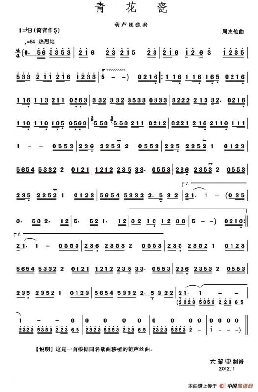 青花瓷葫芦丝谱,青花瓷葫芦丝简谱