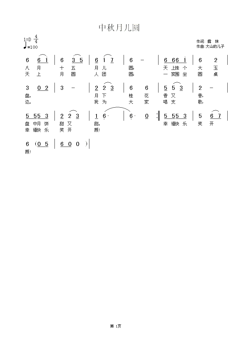 中秋月儿圆简谱,中秋月儿圆歌曲简介
