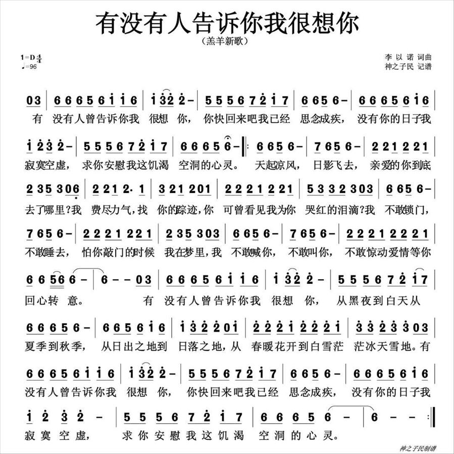 有没有人告诉你我很想你简谱,有没有人告诉你我很想你歌曲简介