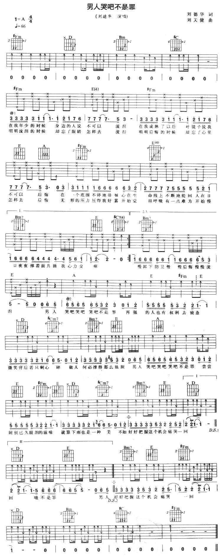 男人哭吧不是罪简谱,男人哭吧不是罪歌曲简介