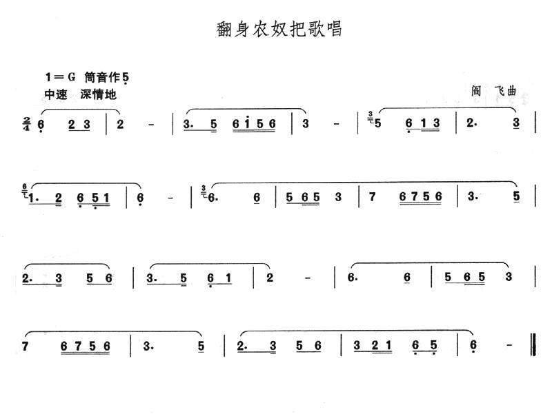 翻身农奴把歌唱简谱,翻身农奴把歌唱歌曲简介